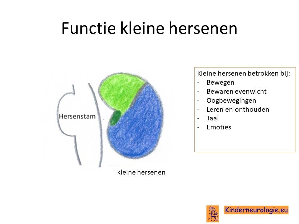 Hoewel de kleine hersenen kleiner zijn dan de grote hersenen, spelen ze een net zo grote rol bij het aansturen van het lichaam als de grote hersenen. De kleine hersenen spelen een belangrijke rol bij bewegen, het bewaren van het evenwicht, maar ook bij leren, praten en het omgaan met emoties. Omdat de kleine hersenen minder goed werken bij kinderen met dit syndroom, geeft dit problemen met bewegen, leren, praten en omgaan met emoties. Deze problemen worden het cerebellair cognitief affectief syndroom genoemd.