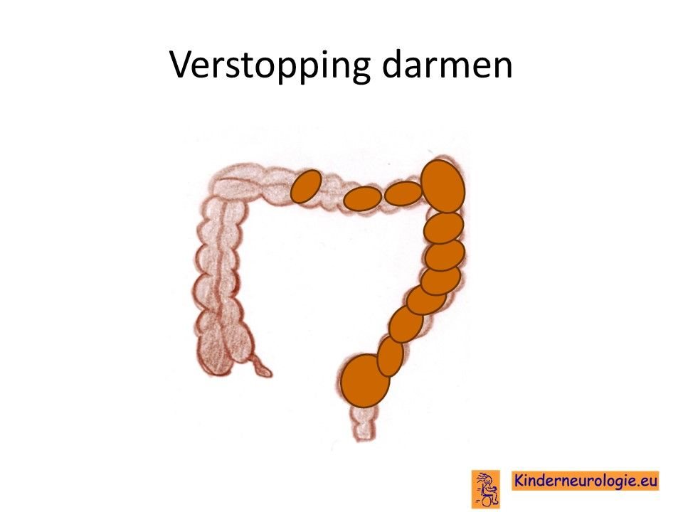 Verstopping van de darmen komt vaak voor bij kinderen met dit syndroom. De ontlasting komt dan niet elke dag en is vaak hard waardoor kinderen moeite hebben met poepen. Dit kan buikpijnklachten geven en zorgen voor een bolle buik. Ook kan de eetlust hierdoor minder worden.