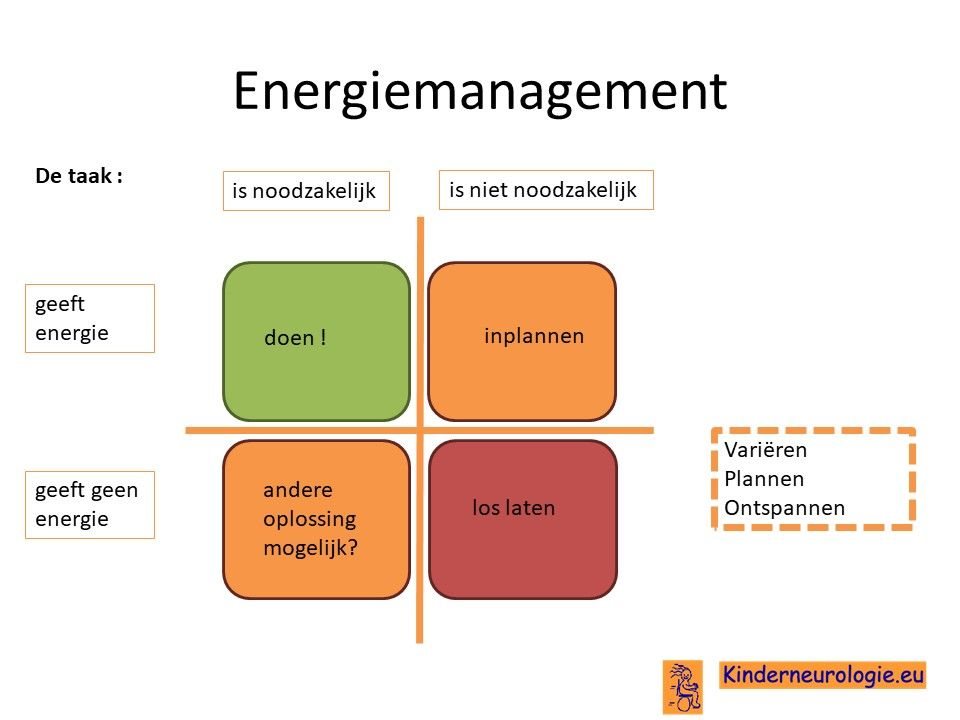 Ook is het belangrijk om te bedenken wat goed voelt voor jullie als gezin en voor jou als ouder en waar jullie energie uithalen. Zorg ervoor dat er bewust ruimte is voor momenten die dit goede gevoel geven. Tot slot is het belangrijk dat je als ouders ook goed voor jezelf zorgt, de zorg voor een kind die zich anders ontwikkelt vraagt nog meer van ouders dan de zorg voor een kind die zich zonder problemen ontwikkelt. Het is goed om voor jezelf te zorgen of te laten zorgen, zodat je als ouder ook de energie houdt, om jouw kind te blijven begeleiden op een manier die bij jou past. Besef dat bij opvoeden hoort om te leren los laten. Veel ouders vinden dit lastig, zeker wanneer hun kind zich anders ontwikkelt dan andere kinderen. Maar het kan toch nodig zijn een deel van de zorg op bepaalde momenten uit handen te geven, ook als die ander het anders doet dan jij, je kind leert van deze verschillen en het geeft jou de mogelijk om zelf uit te rusten of nieuwe energie op te doen.
