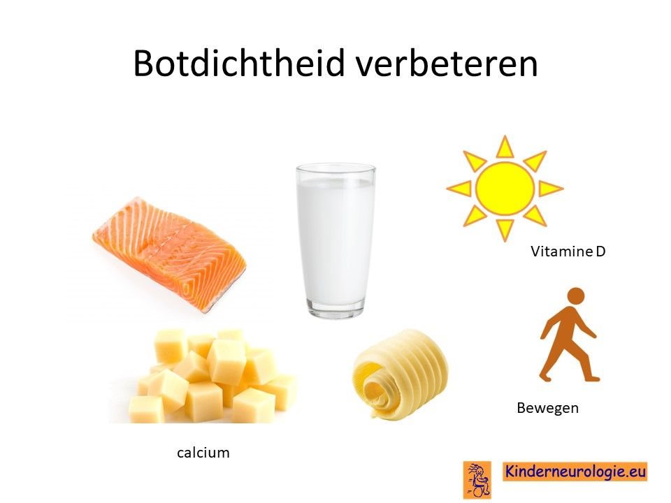 Dagelijks bewegen tijdens daglicht helpt om de botdichtheid te verbeteren. Ook is het belangrijk om voldoende calciumhoudende produkten te eten en gezonde vetten om zelf voldoende vitamine D aan te maken. Wanneer dit niet voldoende is wordt geadviseerd om dagelijks 400IE vitamine D te geven.  Soms is het nodig om zogenaamde bisfosfonaten te geven om de botdichtheid te verbeteren.