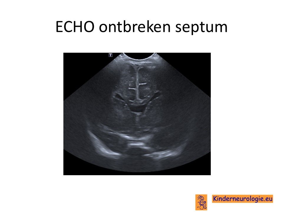 Bij pasgeboren kinderen kan via de opening in de schedel (fontanel) een ECHO van de hersenen worden gemaakt. Hierop kan gezien worden dat het septum, tussenschot tussen de hersenholtes, ontbreekt. Het is op een ECHO lastiger om de grootte van de oogzenuwen te beoordelen.